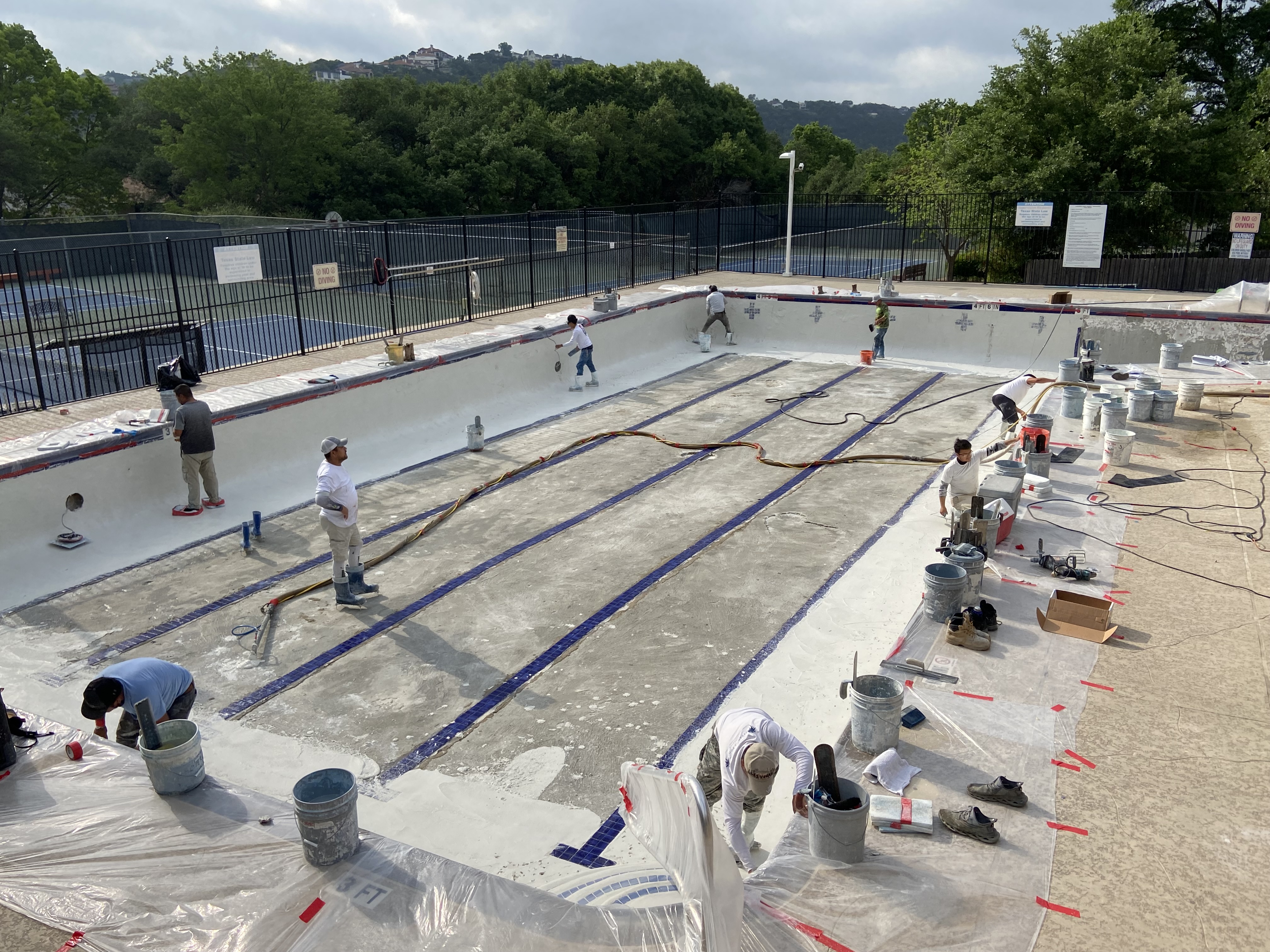 Workers poured new plaster Friday on the floor and steps as the Lakewood pool renovation moves ahead. Once all plaster is installed, the pool will get an acid wash before it’s refilled with water next week. But more work will follow before the pool reopens. The crew then will treat the water with chemicals and brush the pool. Then the deck needs patching in places, the children’s pool will get a new fence, and the pool drain will be unclogged. There’s lots to do. The project is on track to open by the start of summer if the weather holds up!